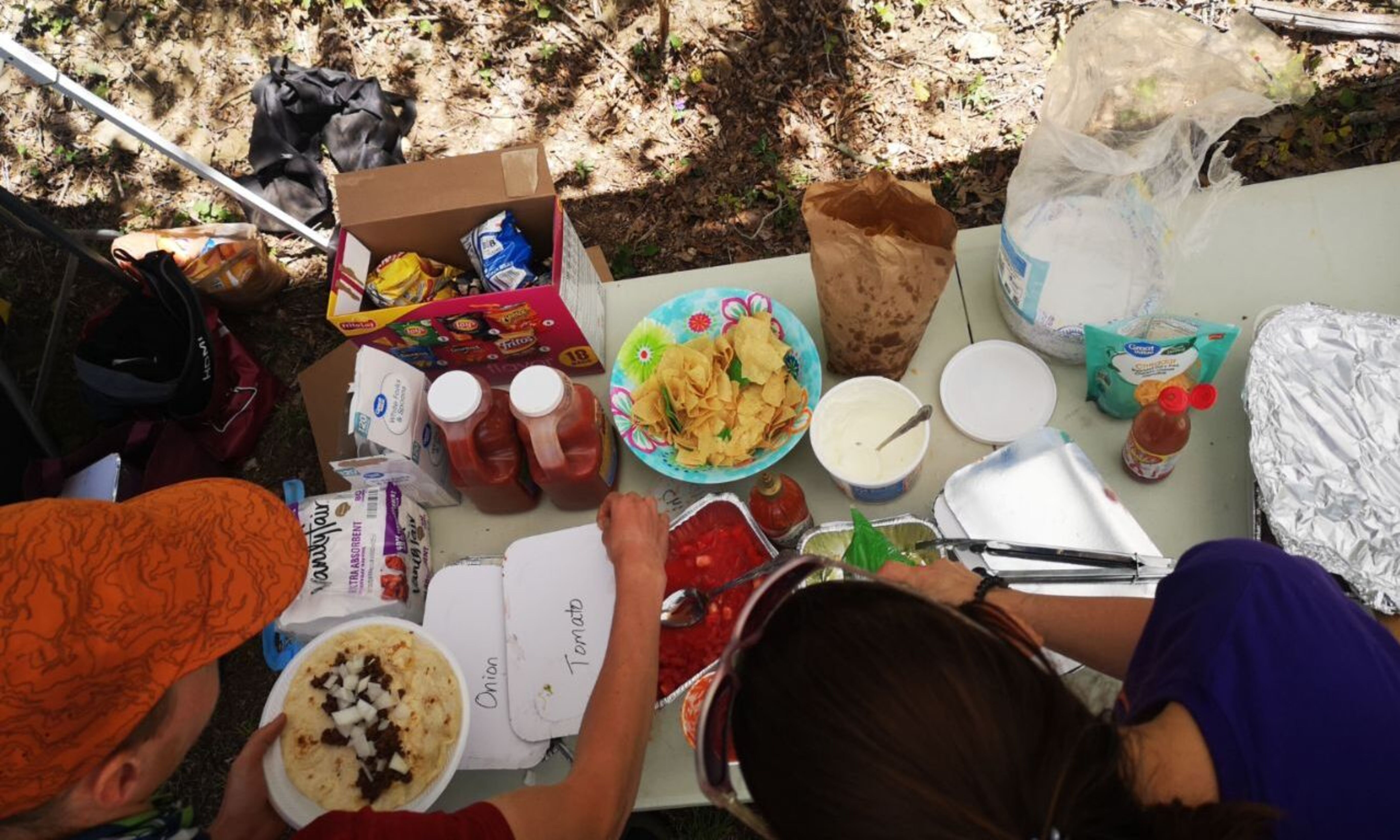 "The best Trail Magic: former hikers have prepared lunch for us, tacos where we can add all the vegetables we want, plus snacks, and music (I missed that!!!), and even Ziploc bags, toilet paper, small tubes of toothpaste, and trash cans to help us get rid of these last few days. In short, everything we absolutely need." — Gwendal Renault (Creamsicle)